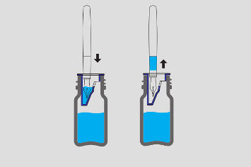 - Insérez le réservoir d’encre dans la bouteille.
